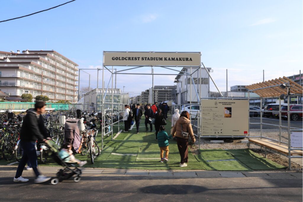 ゴールドクレストスタジアム鎌倉も期間限定のスタジアム。仮設資材でつくられたこのスタジアムは、数年後には次の土地へサーカス団のようにノマドします。