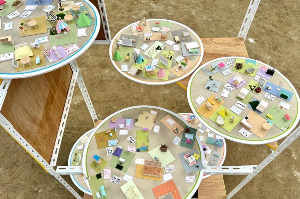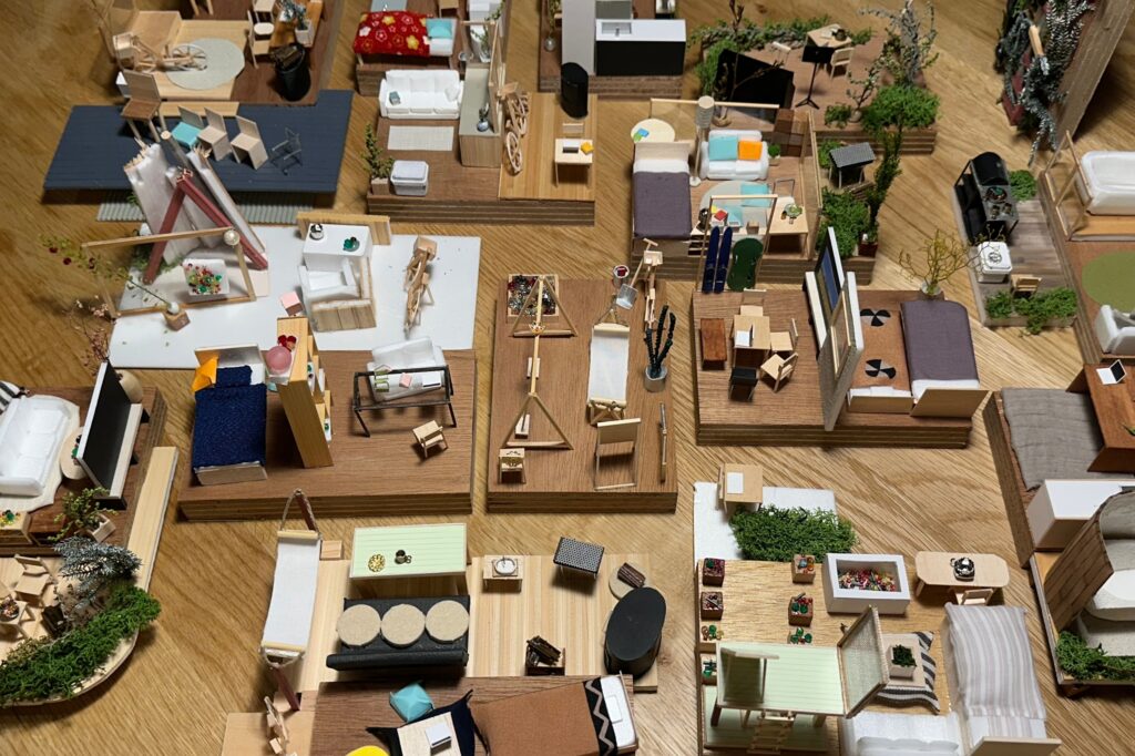 北海道東川町のCompathで開催した、実践女子大学一色ゼミによる「模型づくりワークショップ」。町の産業の一つである「イス」をテーマに、子どもから大人までが一緒に地域の未来の手がかりとなる模型をづくりに取り組みました