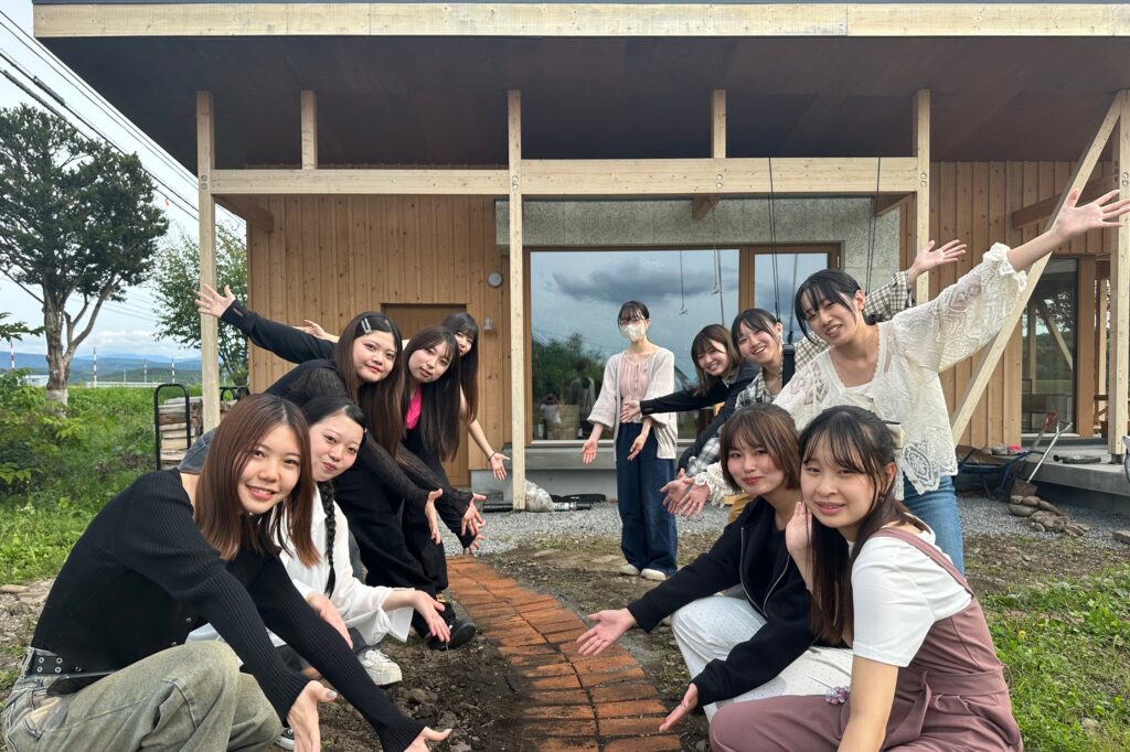 北海道東川町の住宅「ひゃくとわ」で、2年連続で一色ゼミで庭のランドスケープデザインを少しずつ手がけています。広い庭にレンガで道をつくり、新しいアクティビティを生み出す実験をしています。